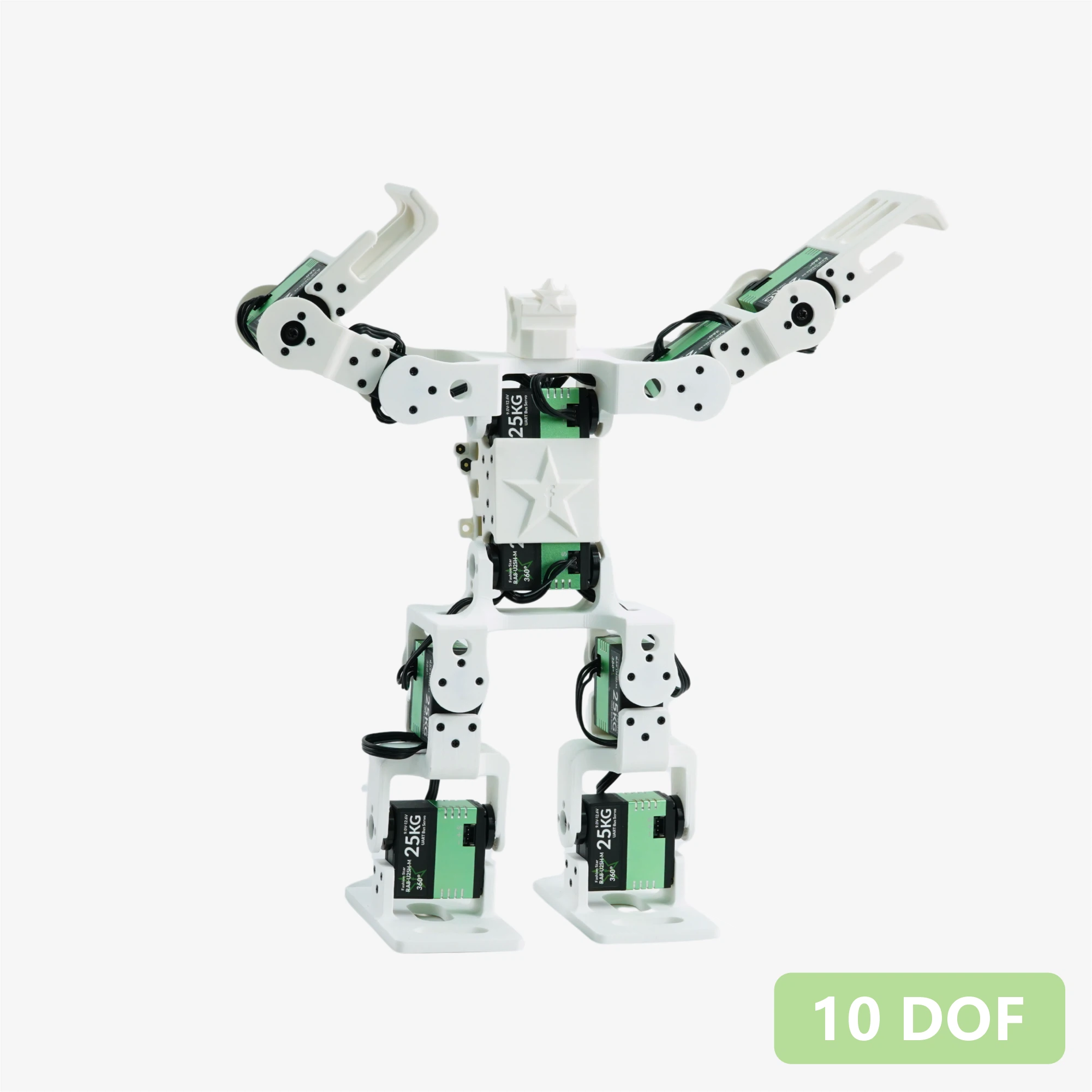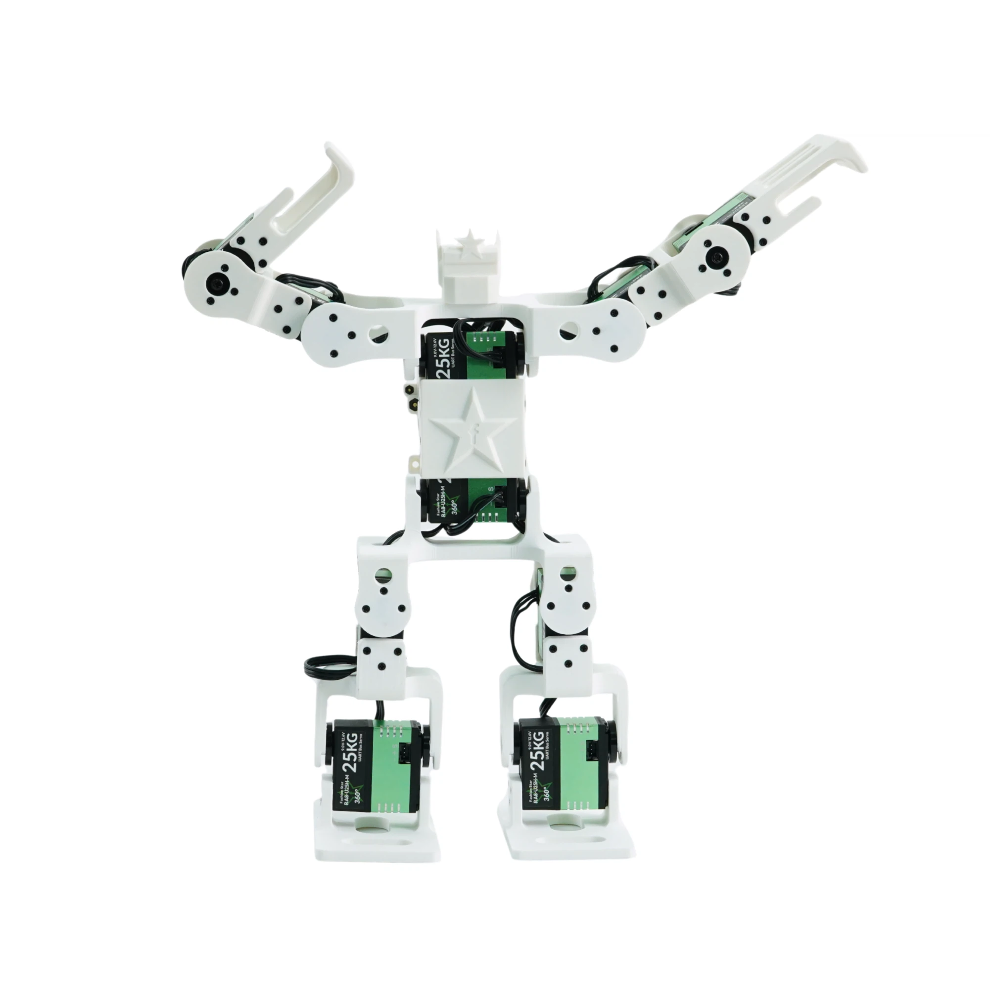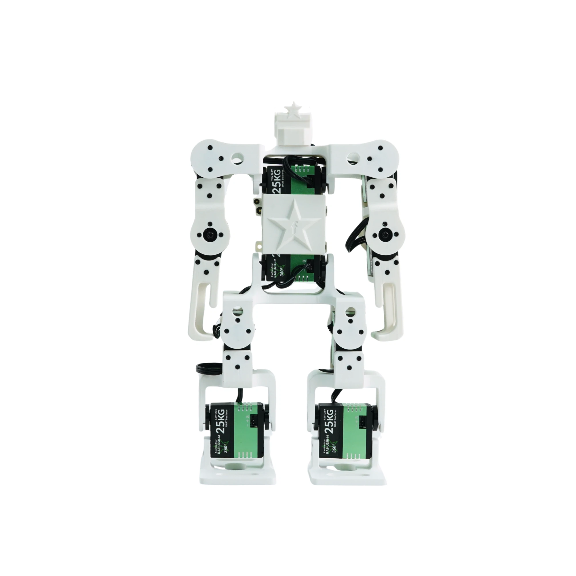 Its body is built from high-strength, laser-cut aluminum alloy with fully bearing-supported joints. Powered by 16 distributed serial bus servos delivering up to 45Kg of torque each, it can perform advanced combat maneuvers such as side kicks, straight punches, hooks, rolls, and jumps. Designed to meet the specifications of both domestic and international bipedal robot combat competitions, it is built for high performance in the arena.