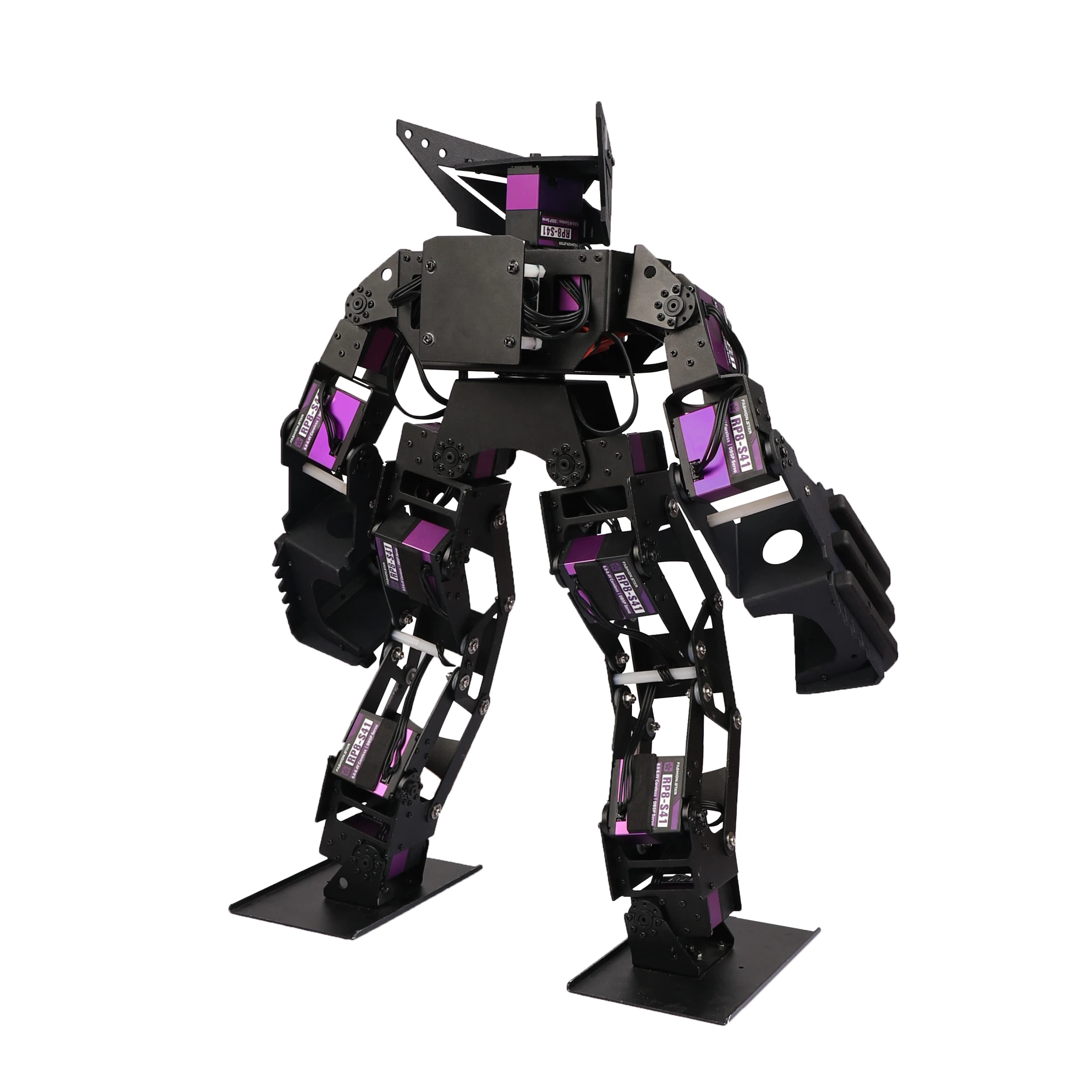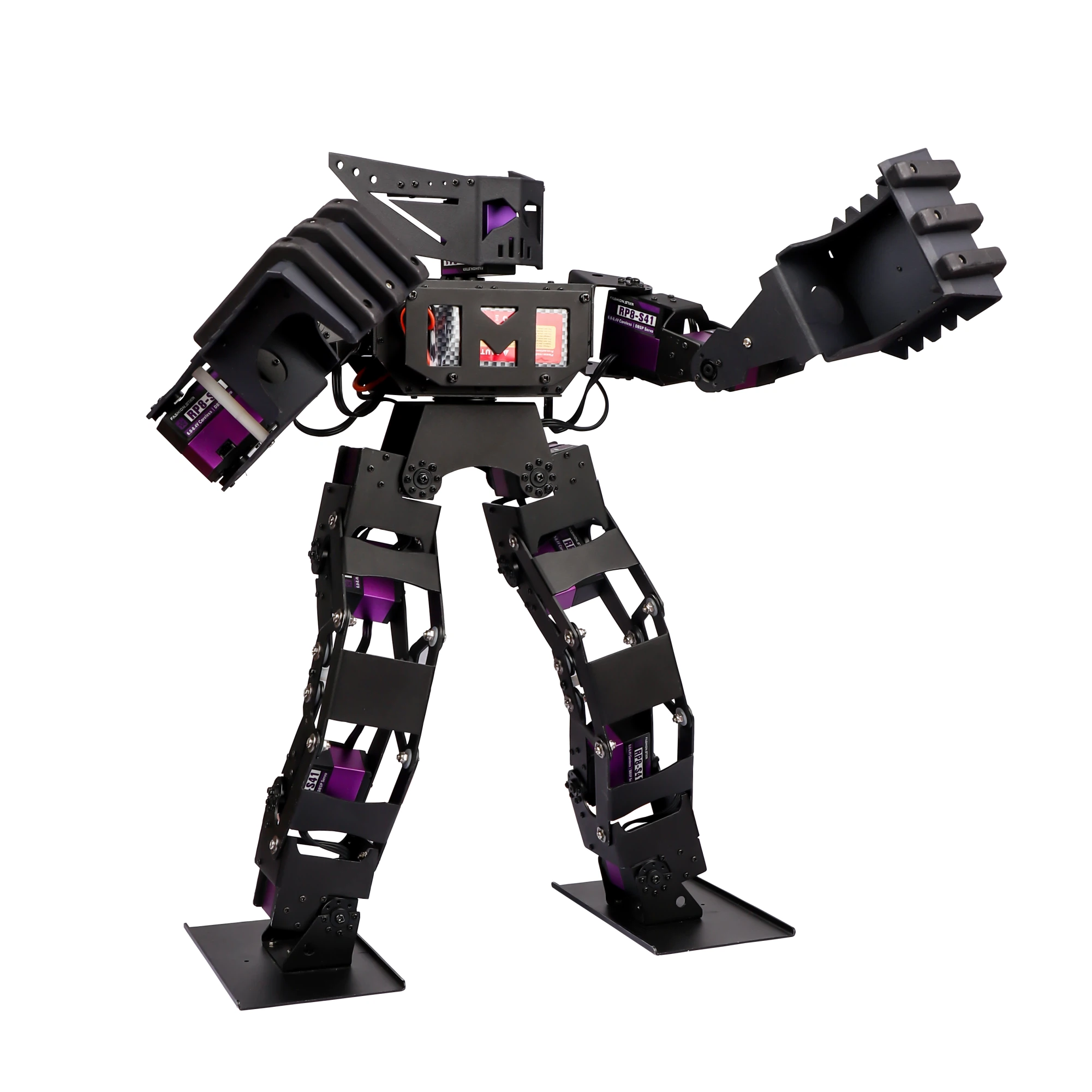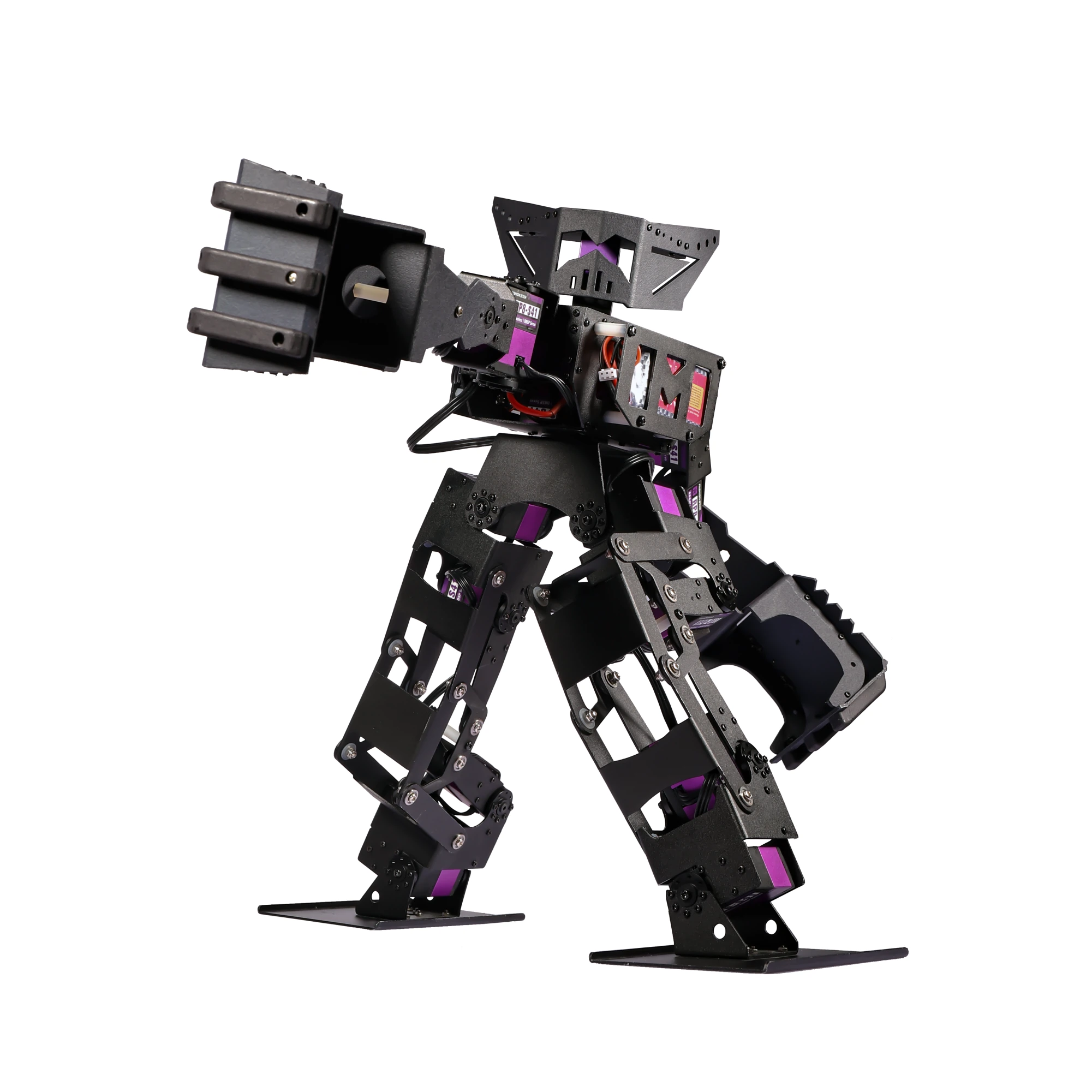 Its body is built from high-strength, laser-cut aluminum alloy with fully bearing-supported joints. Powered by 16 distributed serial bus servos delivering up to 45Kg of torque each, it can perform advanced combat maneuvers such as side kicks, straight punches, hooks, rolls, and jumps. Designed to meet the specifications of both domestic and international bipedal robot combat competitions, it is built for high performance in the arena.