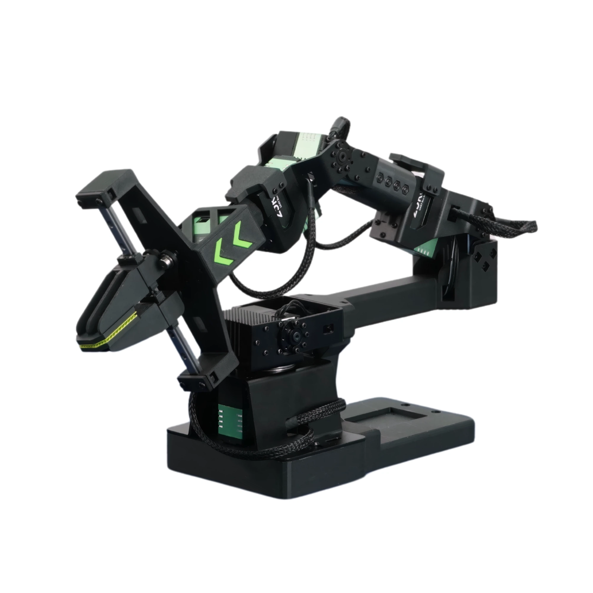 Full-metal construction with bearings at key joints for higher load capacity and rigid, repeatable positioning. The integrated base and aluminum-alloy bracket keep the arm firmly supported under load.